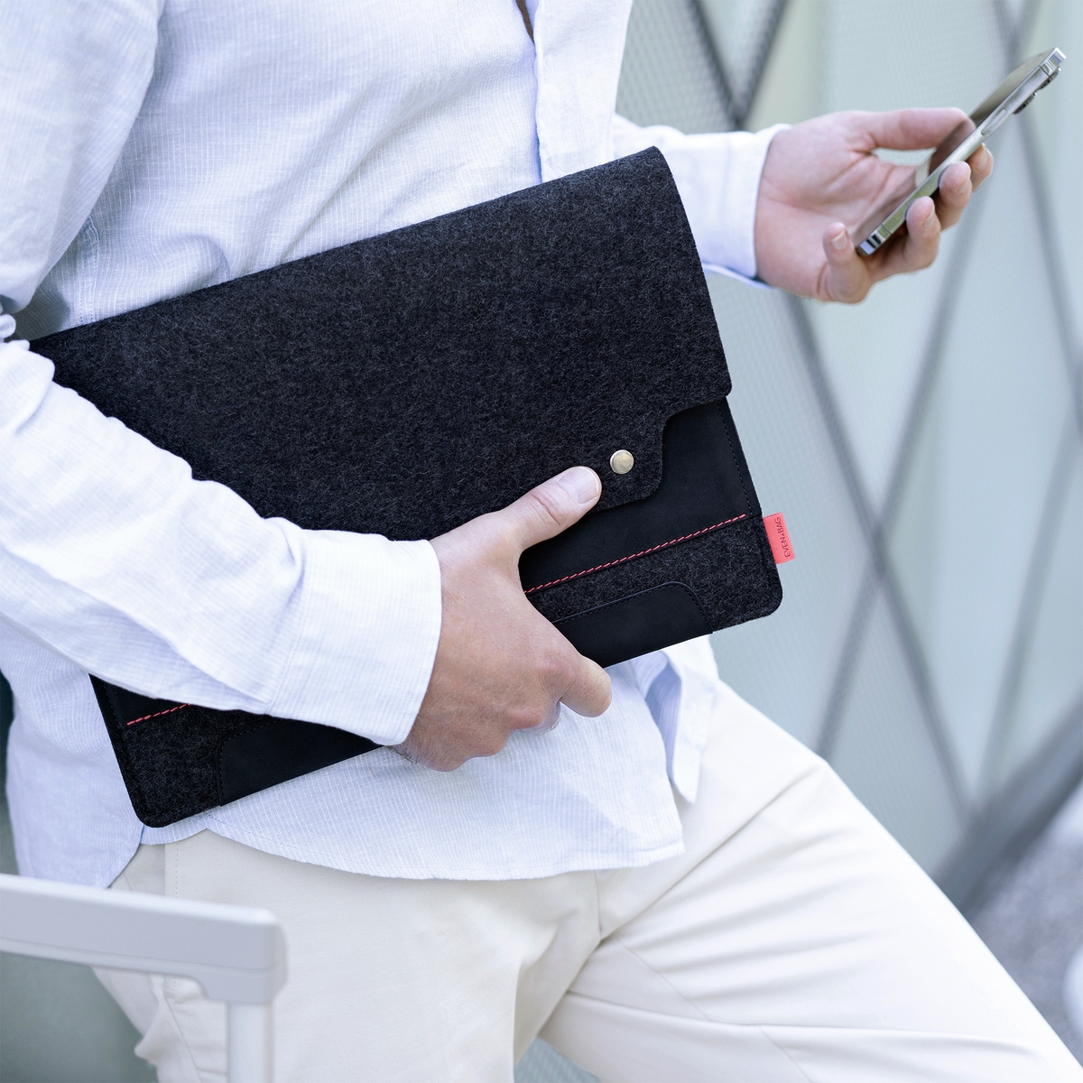 Schöner Wohnen für das Tablet, frei nach dem Prinzip „Smooth & Safe“. Das Hampshire verteidigt jedes iPad inklusive Smart Keyboard / Smart Keyboard Folio / Smart Folio tapfer und erfolgreich gegen alles, was kratzt und schürft und verbeult oder schmutzig macht. Dafür ist der hochwertige Wollfilz da, aus welchem diese minimalistische iPad Pro Hülle besteht. Zusätzlich hast du einen Kontrast Look durch die Echtleder-Applikationen an der Unterseite, welche farblich passend ausgewählt wurden. In der Vordertasche der Tablethülle finden iPhone, Notizblock & Co. ein gemütliches Plätzchen und du hast deine wichtigsten Utensilien immer dabei